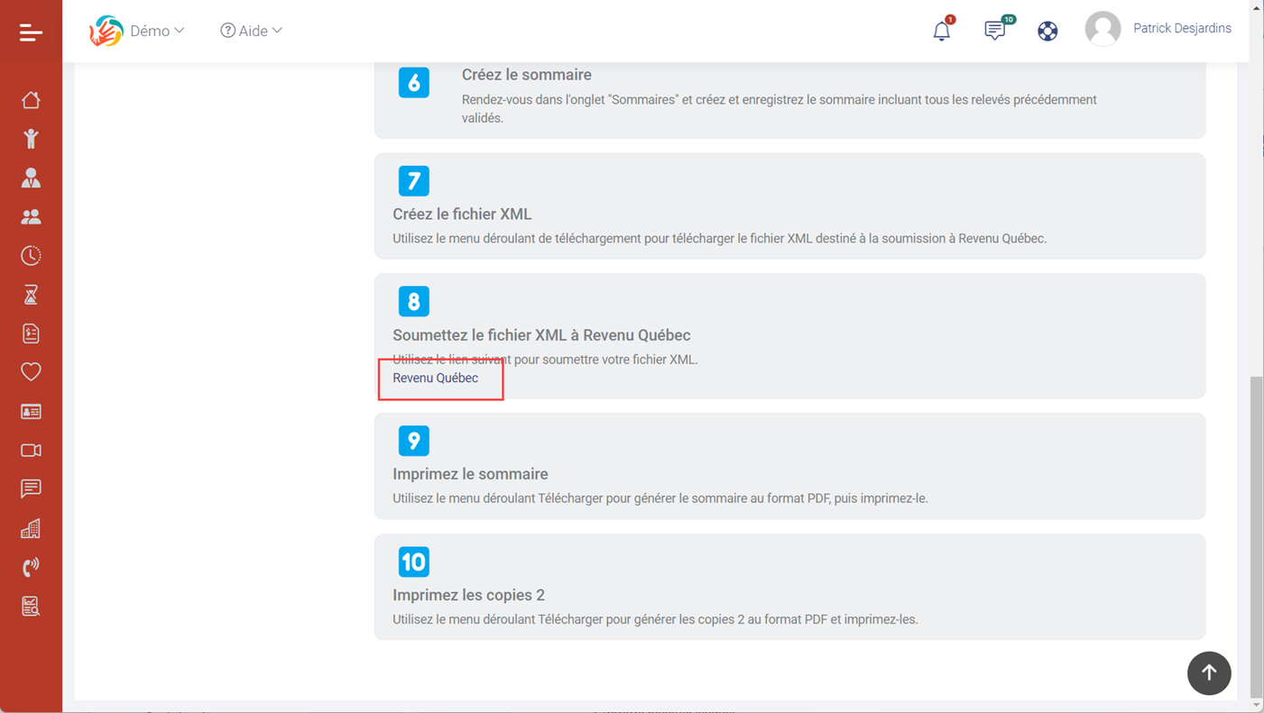 Vous pourrez trouver le lien vers le système de Revenu Québec dans l'onglet Comment utiliser ce module.